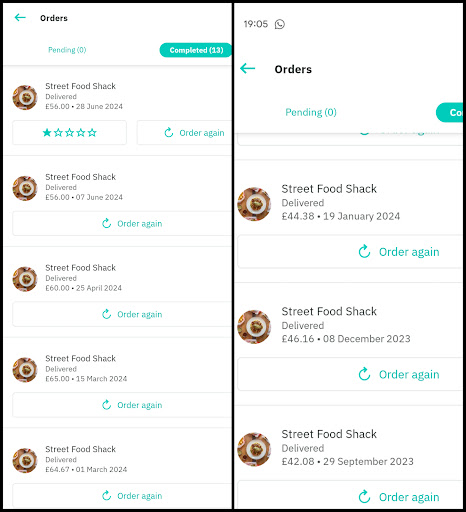 However over the 9-12 months or so, the quality has really slipped. I've had to start working late, so instead of finishing work, heading to the restaurant and heading home I've been ordering on deliveroo and timing it right so the food arrives as I'm locking up and setting the alarm. It's lazy but convenient. And they were always orders of approx £50-65, so not exactly small amounts of money (screenshot attached of deliveroo history)