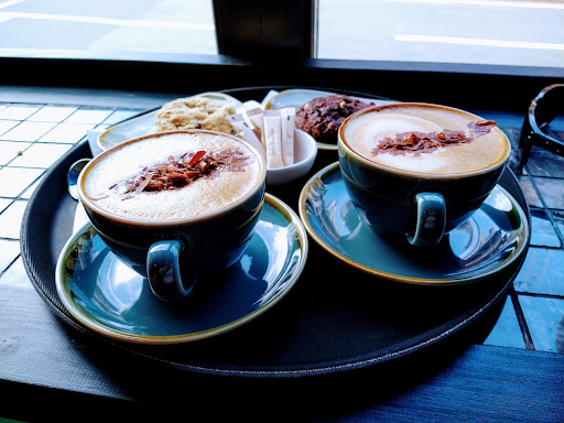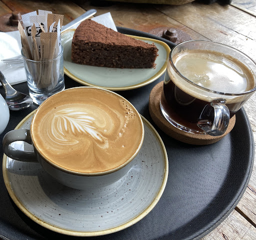 I was here recently with my partner and then my little boy (hence random photos) we had cappuccinos, cortados, oat milk baby-chinos, hot chocolate and cookies!