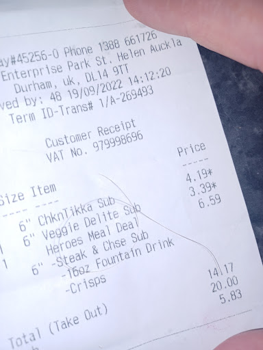 Read moreRecently moved to the Bishop Auckland area. Tried this subway 3 times. The first time the lady was absolutely lovely and could not fault her whatsoever. The second time literally the same week the second experience wasn't as friendly I.e no please or thank you but the woman did perk up a bit in the end. The 3rd experience was the worst yet and unfortunately I would not be returning. The guy didn't even know how to make the sandwich I wanted and I noticed at least 3 flys where the meat section was. What was even worse the more senior member of the two just went out the back. Honestly how can a place go so downhill in the space of 2 weeks? After reading the comments on here I can see numerous people have had the...