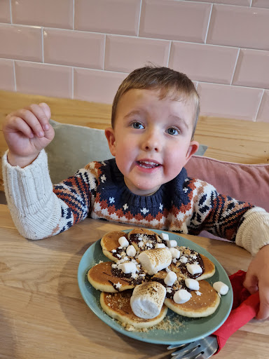 We have visited a couple of times now and the food has been amazing. I particularly love the posh beans on toast and the pancake stacks are epic! On our first visit, my son only managed half of his giant stack but we were able to get a box to take the rest home to enjoy for breakfast. On our second visit I asked if a smaller portion was available, and they offered a 'baby' portion. This was a much more manageable size for a child. The hot drinks come with oat milk as standard, but there's an option for swap for other non-dairy milks.