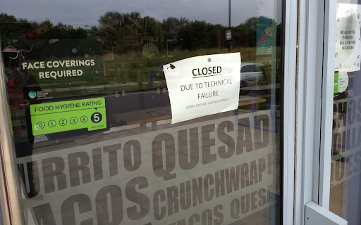 How are you still open? I have never seen such incompetence! I will begin my tale of woe by setting the scene, me my wife and my 2 children were about to embark on our lengthy trip home when we had the idea of grabbing tea on the way home so not wanting McDonald's like the children me and wifey decided on taco bell. So off we went to sit in the queue at the drive through for 10 minutes. The queue did not move, my wife commented on the fact that "this is not much of a drive thru they only have one window" at which food was delivered to the first car so I thought here we go! Being the 3rd car in the queue I thought we would be getting food soon enough. When the first car pulled of we moved forward to read a hand made sign in the drive thru window that couldn't be read from 2 cars back stating "cash only" at this point me and the wife both profained in the presence of our children because we only had the plastic. While convinced I had just wasted my time sustenance was still required so we pulled up in the car park to walk in and order it over the counter. I know what you people are thinking, that this isn't that big a deal but when I walked in the queue was heaving there was a whopping 2 people waiting to be served before me! I held my nerve and braved the 10 minutes of queing for the astronomical amounts of customers! Honestly I believe your staff could be overwhelmed by having to walk and talk. When I eventually got to the front of the queue, a split second before I could order your employee held a finger up to shush me and politely said that she must inform me that there is a 25 minute wait on food. I responded with "that would've been helpful information 10 minutes ago when I walked in" to which she responded smugly "meh I have to go on my break soon". She didn't even apologise! Seething with anger I left before saying something that I probably shouldn't have, and went for a KFC that took 30 seconds to pay for and receive.