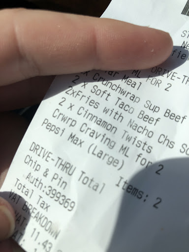 Northampton: 4pm on a Saturday, so not a quiet time but hardly peak rush either - especially with Cineworld still closed. 40 minutes sat in the drive-through to serve approx. 8 cars in front of us. Once we finally got to the window and paid we waited for a few minutes while the man running the window took the next order - only to be given the bag that had been right next to him the whole time. If it was there why make us wait, why not give it to us? We also had to ask for our drink, which was right in front of him next to the bag. What a surprise, when we got home we were missing an item. Sure it was only a couple of churros but come on...