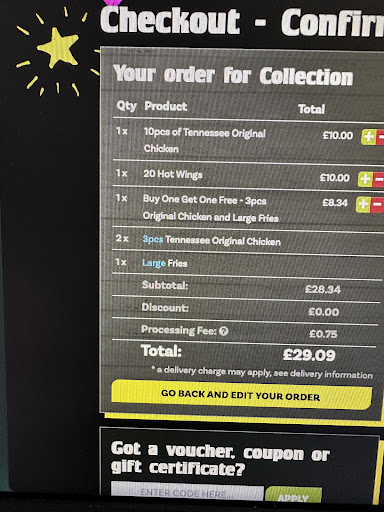 Read moreI ordered for collection. I ordered some wings, and this is what I received . I had already seen that they were out of wings and were rushing whilst they were cooking . I went back and returned them to the store , the manager said that it was typically because they had just been freshly taken out , but upon close look they were obviously raw . The manager had a brief look at them and they were kept aside . I did mentioned that I was happy to show her the parts where you could see the rawness but she denied by saying it’s normal . Even showed her the pictures but it didn’t change nth . She only suggested for a replacement for the wings which I denied to. It’s sad that they serve this type of food and deny things even when the proof is shown to them especially when this food was...