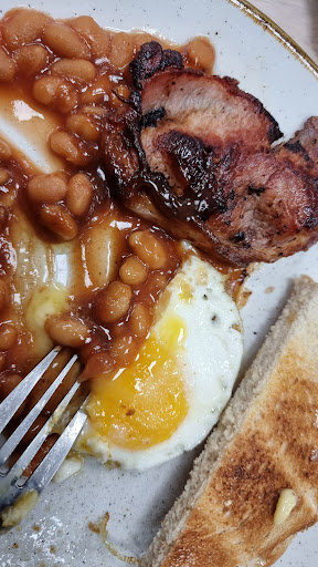 Ā Ā Ā Read moreLooks really nice to sit & eat which it was itās just a shame the food was a let down. We both had the breakfast (1 big, 1 small), first impression it looks great till you move it around & start tasting it. First you notice the grease which you can get past, then eating it is where it goes downhill. Thereās no flavour to the sausage or bacon, the hash browns taste mushy when you eat them, to be fair the egg & toast was the best bits. Also if you want ketchup the only option is Tesco own brand which is really low grade, it tastes awful. I nearly forgot my partner paid Ā£1.25 for a mushroom on her breakfast, she was expecting a large flat mushroom for that price but she was disappointed, instead a medium over cooked mushroom arrived.