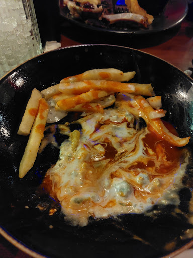 Mains arrived - my ribs were missing coleslaw and i was told my waitress should have told me. Oh dear. I was offered onion rings or corn as an alternative - i chose onion rings which arrived after we finished the main courses. I also chased up the status of my beer order at this moment in time... The 'warrior' fries which I 'upgraded' to were quite literally swimming in a blue 'cheese' and hot sauce infusion. It was so intense and ghastly that I couldn't finish them. Photo attached.