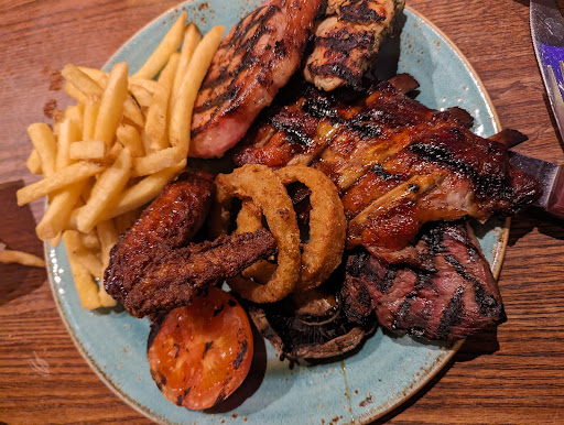 Read moreWent for food today at 4.45PM no one available to meet and seat for 5mins. Once seated drinks order taken then waited another 15-20mins for someone to come and take our food order. Starter arrived I am still looking for the pulled pork topping on my so called loaded potato skins. Had to ask for cutlery as none provided or available on the table. Mains courses continued the negative theme my wife requested no tomato on her sandwich due to an allergy - they supplied the tomato in full and as for my ribs they were nothing short of cremated with only 4 ribs!! Again had to ask for cutlery. Also out main arrived before the waitress (who was blowing up balloons) thought it time to clear out dirty crockery. No staff member enquired if our meals were ok nor did they offer refills on drinks. Feeling disgusted I complained about the tomato on my wife's order as this could have made her ill and was offered free desserts - my wife declined but I accepted a rocky road sundae described as tipped with a cherry and flake. Guess what neither were apparent. At this point still sitting at the table 1.5hrs later I asked for the bill which took another 20mins for them to bring a card machine for us to pay! At this pint I mentioned the lack of toppings and was confronted with the comment 'why didn't you complain?' To be fair I would still possibly be sat there now if I had. The food quality is diminishing as rapidly as the level of good service - we won't be returning despite previously enjoying the...