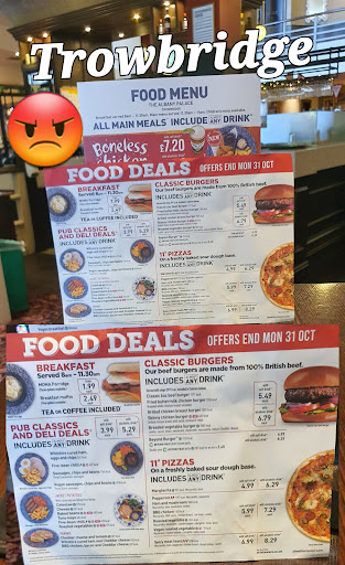 Read moreVisited yesterday afternoon. Ordered two burgers that appeared undercooked and pink inside after eating some; My 19-month-old ate some and later developed a fever, which I am awaiting 111 advice. Additionally, I did not receive a drink I paid for with my meal. I was unaware dogs were not allowed inside and was in the beer garden (a shame because I’d sat all children down at this point, after a drive to Trowbridge and they were happy in the garden) when staff told me to leave while ordering at the bar. I agreed but asked if I could have my food as takeaway so the children could still eat. Server then said I could not have a drink with the meal as they can’t be take away? , even though drinks were available in bottles (just still water). I felt uncomfortable as I overheard staff discussing me over the microphone.