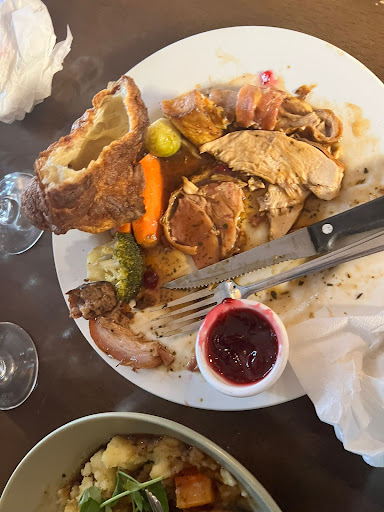 Read moreFor a birthday celebration my friend and I went for lunch here as a change from our usual venue. My starter came and the bread was so burnt it was charcoaled on the underside (sneaky hidden I feel - cannot believe anyone thought it was ok to serve like that!!), when I tried to get the waitresses attention it took three attempts. They all raced about with an agenda NOT to offer an attentive service. No one gives you eye contact. I was greeted with hostility when I tried to be jokey about it being a little too burnt for my pallet - it was black. It was replaced with an untoasted piece of bread - Hohum! My friendâs starter, clearly heated in the microwave, meant the pasty was like trying to chew soggy cardboard. Pictures of the mains attached, the served plated carvery; the gammon was chewy with a lot of fat on the edge. Both Gammon and turkey were cold. The gravy thin and luke warm. The Yorkshire looked promising but was soggy. The roast potatoes were reheated (the inside potato had come away from the outer. The veg was two over cooked carrot battens, two Brussels (cooked perfectly) and a piece of crunchy parsnip. One tiny ball of stuffing which was rock hard. Aside the Brussels all very disappointing - worth ÂŁ14.95 for two perfectly cooked Brussels? Good value? You decide. My friendâs meal was the pork belly or should I say pork fat with about a strip of actual meat about a 1cm along the length of the fat. The fat hadnât been rendered and clearly not prepared by an experienced chef - the photos are of just the fat. Just looking at the lump of fat on my friendâs plate ruined any appetite for both of us! Her roasted root veg comprised of one parsnip, a few pieces of carrot and the mash was dry and lumpy. Clearly in the photos you can see itâs not mash. Did we try desert - we couldnât face it. We mentioned the poor quality of the food when trying to pay, which took 25 minutes, the food so vile we moved to the bar lied about a taxi coming so we could get fresh air and rid our nostrils of the grim fat smell. The Waitress was rather unconcerned about the poor quality of food & went to speak with the manager, he looked over at us. No apology or offer to make anything right about the food, but the cost of the pork belly âfatâ was removed from the bill together with the charcoaled bread. Would I eat here again? No. We are blessed with so many other local restaurants in West Berks all which great you with good vibes, attentive staff and...