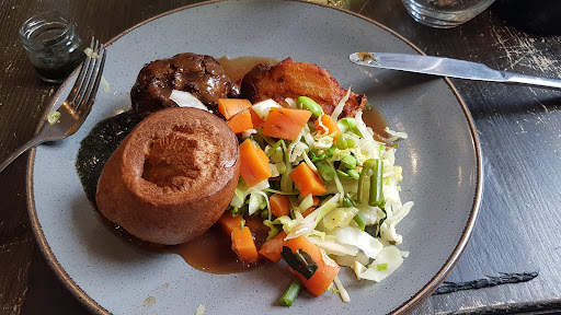 Read moreA previous visit, a year ago, gave us the impression that this is an upmarket establishment. Last time we chose from the small plates menu and were impressed. After our most recent visit we wonder whether this is a haute cuisine fine dining venue or an expensive café bar. Staff were superb, cheerful, helpful and not intrusive. The menu is limited, and we felt unadventurous. (Pie and chips, fish and chips, steak, burger.) We had felafels, squid and both had mac cheese. Felafel lacked flavour but the sweet chilli jam and mint yoghurt did add some. The Mac cheese, with bacon had a lovely flavour. The spring vegetables were good as were the roasted new potatoes. The rosemary focaccia was superb. The two mocktails were excellent. We chose early afternoon so that the restaurant would be quiet and there was abundant space. However the noise of four young children playing in the bar might have disrupted some diners. We were in an adjacent room but still could hear them clearly. We didn’t hear any guidance from the accompanying adults so don’t blame the children. To show balance I also comment on the very mature gentleman with a rucksack on his back taking a phone call in the narrow corridor outside the loos. (On speaker as well.) We enjoyed our meal, staff both visible and not were excellent, but I doubt we...