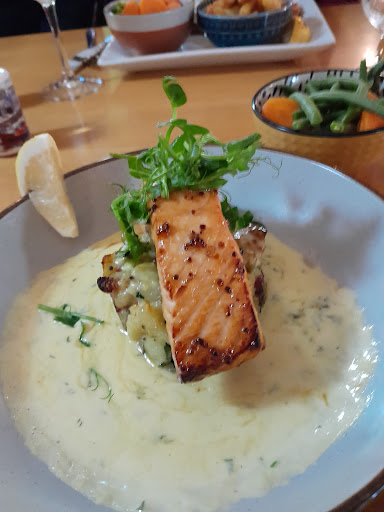 Right, back to my visit, we had two meals over two nights. On the first night we had the standard menu, mine was a Burger with chips and coleslaw with a choice of cheddar or Yorkshire blue. I went for the blue. Delicious, although we ordered from the standard menu, we clocked the special board for the following day. Andy couldn't promise but he did say that the items we chose would be on the specials next day. Were we disappointed. No we weren't .... But then he added rack of lamb to the specials. We were torn, what we had chosen the night before (Seared Pork medallion and Sea Trout) or the rack of lamb. The lamb won, OMG simply the best meal I have had out in a very long time (even pre-covid). It was so good we didn't have a dessert, we ordered an extra portion to share between us.