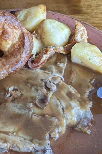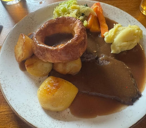 Staying in the local area we really fancied a proper Sunday lunch and spotted this pub had great reviews. I phoned to book around 11.45am and the earliest table for 2 was at 1.45pm - a good sign! When we arrived we were welcomed warmly and very well looked after by the staff and I believe the owner also. Drinks came out promptly and our beef roast dinners were fabulous. Often a pub Sunday lunch will have tough meat and cold, hard potatoes - especially at a later sitting - but here it was absolutely perfect. The beef was generously served, tender and fell apart on the fork, the potatoes were piping hot and perfectly done, a perfect Yorkshire pudding, a generous helping of seasonal veg (served on the side) and - best of all - tons of delicious, proper tasty gravy. All served within 15 mins of us sitting down and ordering.