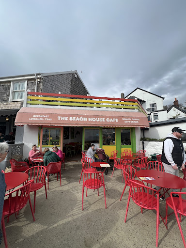 Beautifully bright and colourful little café on the seafront, let down by somewhat grumpy staff. We’ve been coming to Lyme for years but never tried here before as they always seem to close really early. Went in at 2:30 on a hot sunny day and didn’t realise until checking online later that they close at 3pm. Although when we walked past on the way back to our car around 5 ish one of the men was still there so maybe they do stay open later when it’s a nice day. Either way we felt really unwelcome like they were irritated by our presence, bear in mind we were literally the only 2 customers they had. We were told they could only do a couple of sandwiches or small things like tea cakes. Which was fine we only wanted a quick bite. Crab baguette expensive of course but not surprising and you do get quite a lot for that, although it is simply mixed crab meat in a baguette, but you do get a small side salad you can add. Tea cakes were large also. Hot chocolate pretty standard. You can help yourself to water inside. All in all pretty standard café food and drink and unbothered cold staff but beautifully decorated and in great position on the beach with lots of seating outside. I wouldn’t rule out returning as I am interested to try their shakshukas or...