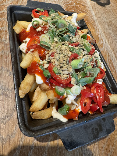 We were in the bar area, it was a Sunday evening so mainly dead. There was a family with screaming kids and a couple of ladies who were absolutely steaming, disturbing everyone. Everyone who was sitting eating food ended up moving to the other end of the bar including us. The kids were flinging chairs across the floor, yelling. Running in & out of tables of people who were eating and you could clearly see everyone was getting annoyed. Manager behind the bar couldn’t care less. I Kept telling the kids & the women to stop coming up to our table when we’re trying to have a meal and to leave the dog alone. Then they were calling him from across the room. The looks on all the customers faces were fed up & quite surprised the staff just couldn’t care less despite people complaining about it.