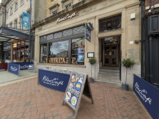 Read moreI think this place has become a favourite of mine, without a doubt! Never even realised it was here until earlier on today. After finishing in town, I fancied somewhere to sit and people watch for a bit, while enjoying a drink and maybe a sweet treat too. I looked at a couple of cafes close by, but The Bookcafé stood out the most to me. Well I'm glad I chose this place, because it's awesome and super quirky! A shame I didn't bring my journal with me, as it's a great place to either catch up on some writing or get stuck into a good book for a while. There were plenty of seats to choose from, so I ended up going by the window, so I could people-watch and simply enjoy the world going by. The staff were lovely, being greeted with a smile by one of the young ladies who worked there. There's a choice, to either order at the counter or from the table which is handy. It was simple to use, and you could pay through Google/Apple pay or even PayPal. The young lady I mentioned, kindly came over to inform me that they hadn't got any of the ginger cake. However, they did have a selection of other great-sounding cakes and treats. So after refreshing my memory and having a look at what they had, I went for the coffee marble cake (deliciously moist, with a subtle coffee taste... Not too overpowering!) 👌🏻I also ordered a large cappuccino and they didn't take long at all to arrive. Another lady who brought them over, was super friendly and pleasant, which just enhanced the overall experience so hats off to the staff, for being fabulous! It was nice to sit and relax, listen to the music playing and watch the world go by. Such a great place, if you're looking for somewhere to unwind for a while from the hectic...