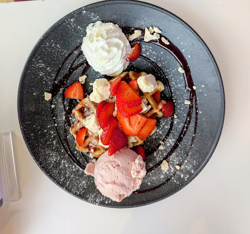And then came dessert, which elevated the experience even further. The waffles were warm, soft, and gently crisp at the edges, a perfect canvas for indulgence. I savoured the Terry’s Chocolate Orange creation—an exquisite balance of rich cocoa and zesty citrus—while my partner delighted in the Strawberry Meringue, a symphony of airy crunch, ripe fruit, and silky cream. Both were exemplary, executed with finesse and presented with an elegance that transformed classic comfort into culinary artistry.