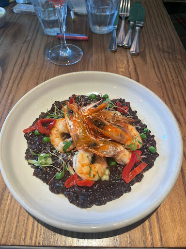 We were welcomed by the lovely manager Omid and served excellently by our waiter Eddie. The firm's executive is Michelin starred chef and culinary legend Raymond Blanc. The place has lots of different areas including cosy pub spaces one even with an open fire. Plus large open restaurant space. I have put up pictures so that you can see the food, which was lovely. I had the Mediterranean fish soup starter and the chalk stream trout both of which are the best example of those I've had in years. His lordship had the cheddar cheese souffle followed by the burger and chips. He loved them both. He was particularly pleased that the burger was cooked to how he ordered it which was well done. It's good to have a chef that listens to the customers’ requirements. We had a couple of different sides, one was a baguette with dips which was really nice generous portions - the garlic butter one was absolutely delicious and full of garlic so if you like garlic it's perfect. For dessert we had sticky toffee pudding and chocolate delice. Both of these were delicious and also very well prepared and served. Afterwards we had lovely strong cappuccinos. There was a selection of milks available for the coffees which was appreciated. I had the oat which tasted lovely. For drinks we had a gin and tonic which was strong enough to get the other half squiffy even though it was only a single and I had an orange lemonade, which could have been more orangey. I also had the Prosecco rose which was very lovely and light, but could have been chilled a tad more. His nibs also had a small serving of rose which I also snaffled a taste of, this was also delicious and light. Highly recommend this place. The manager said they offer Sunday lunch, so we will definitely be back for that as soon as possible after they...