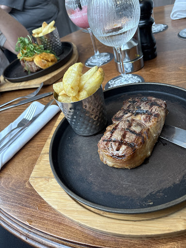 For a long story short- this was an amazing experience here today. For the long story: please note before I start with this review, I have been in the hospitality industry 8 years and managed my own bistro pub for a long time, and 2 of the other friends I came here today with are extremely snobby eaters and complain about everything. Me and 3 others came here today as a walk in (which is very unlike us as we always book) but it was a Monday early evening so hoped it would be fine. As soon as we walked through the doors were were greeted with extremely friendly smiles from the staff, we were seated instantly in a lovely Resturant area, as walking through the rest of the staff also greeted us with warm smiles which is lovely to see! We ordered 4 starters and 4 mains. Two of our party are gluten free which obviously is very annoying for anyone in the food industry. The team were all very knowledgeable about the menu, able to tell us all the specials with no relay from a note pad (telling me a successful brief had been done before the shift) and we were always greeted and approached with smiles. Being gluten free there is definitely worries about the food we digest but the waitresses today all very much reassured us and triple checked with the chefs etc. when our starters came which was two breaded Brie and two special ham hocks with crispy cheese and potato cake, we all groaned in pleasure! We mentioned throughout the table that this is not going to be topped by our mains…. Until it was!! For our mains we ordered a beef stroganoff, a beef pie and 2 ribeye steaks. These were fantastic and we would have been happy to pay double. We all were extremely surprised that the food was just this good. The peppercorn sauce with the steak was the best I’ve ever eaten and trust me I’ve ordered a steak here and there in the past. We couldn’t believe that the chips were homemade! As soon as it was put on our table, we all mentioned this about the chips. I have never seen a ribeye be as thick as this ribeye I had here today.