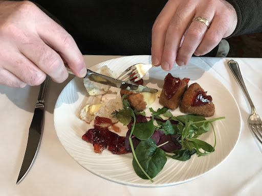 The food itself. I started with Jamon Serrano on french bread. The dish was lacking any french bread, and it was prosciutto rather than Serrano ham. It was three pieces of Ham laid side by side. That was it. Another of our party had mushroom Farçis. This was nothing like any other Farçis I have seen, it consisted of bullet proof grade mushroom surrounding slimes tasteless prawn mush, still, it came with gloopy tartare sauce, that was just as bad.Awful. Still, it could have been worse. A nearby party had melon. A fan of melon with a slice of orange and a glance cherry! In 2019! But worse still, it was melon with ginger. The ginger being powdered ginger from a sugar shaker. Incredible.