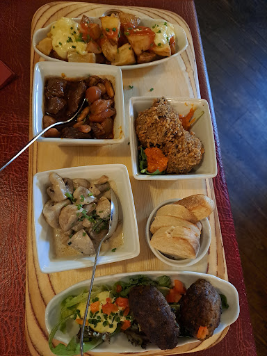 The Cat's Whisker is not over-stating it. Certainly the best on offer in Watchet, that we could find. Thats not saying much in itself as the competition is wanting in Watchet. But the tapas here is up there with the best that we have had (Shrewsbury, Glasgow, Swindon, Cardiff, Dolgellau, in order of preference). Anyway, back to The Cat's Whisker ... superb. Angela slipped us in when we arrived unannounced (a risky thing given the compact nature of the restaurant). Don't be put off by the musky smell. It was opening time after all and the food aroma had not had chance to overwhelm. Neither be deterred by the slightly terse personnel (I put it down to being stressed out a little by unexpected guests when a birthday party was due to arrive soon. The table confetti was objected to!). The food was exemplary. Hard to pick the best dish, so working up from the least remarkable .... the mushrooms were good enough but not memorable. Potato bravas was a pile (even when sharing) and came with aioli and a tomato sauce. King prawns had a garlicy kick. Lamb koftes were very tasty. Arancini were super. But the beef espetada was gorgeous, though not on a skewer. It was a so rich slow cooked beef and butter bean casserole. Stunning. But not as stunning as the deserts. I thought my creme brulee in a china cup and saucer was class, you should taste the chockate brownie which was my wife's choice. Wow. As it is only open from a Wednesday to Sunday, definitely book. Oh, and the price ... brilliant value...