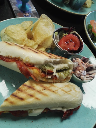 I had bacon, cranberry and brie panini, comes with crisps, salad and homemade coleslaw. I swear it has been a while since I had one that good. Superb combination ratio, I asked for bacon crispy and it was (just) and their homemade coleslaw is lush.
