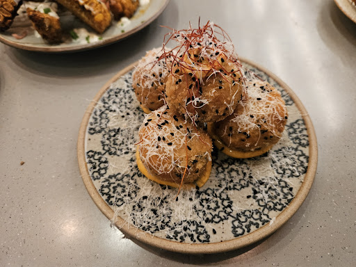 Read moreDiscovered this eatery whilst in Newquay and looked up places to eat on tik tok and google last minute. Service was excellent, staff very polite and welcoming. Atmosphere was really nice, it was busy and had a buzz to it. We ordered some dishes - flat bread with hummus rate it 5/5 - CFC chicken 1/5 as it was overcooked and the coating completely bland, there was no taste to it all as if the seasoning may have been missed out - truffle fries 5/5 exceptionally indulging - pork belly 5/5 very tasty, steak strips 4/5 very nice , but the most disappointing dish was the crab doughnuts 0/5 - unfortunately these again were without seasoning and extremely bland and considering the cost of the dish and the mention of its popularity I was indeed quite let down. However, I did request some chilli sauce or fresh chillies but the waitress mentioned they donât serve that separately. They only had a sweet chilli which wasnât ideal for me. Overall- it is still a buzzy place to be tried and i would definitely visit again but will try other dishes too....