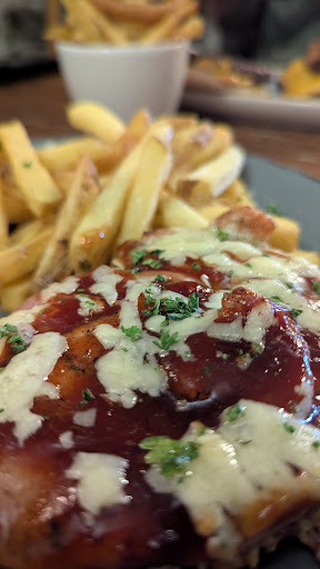 The waitress was nice who took our order and brought our food. Ordered the compass chicken (mushroom cream sauce with bacon and mozzarella) with mash. The mash was lumpy and flavourless, the chicken dry and sauce flavourless. My partner ordered ribs which again were utterly flavourless. I was asked by the waitress if everything was ok and i explained why i wasn't eating it, she asked if i wanted anything else and took the dish back to the kitchen. I declined anything else as frankly i tried both dishes and i could cook better at home.