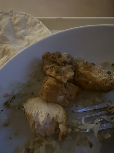 The starter was fine which was just basic poppadoms. The main course was chicken tikka with coconut rice. When the chicken tikka arrived, I thought they had given us a starter portion instead of a main course there was hardly any chicken there. I questioned this with the waiter and he confirmed that it was a main course. It looked like they’ve got a small course for one and split it between two of us. There were eight very, very small pieces and it would take about three pieces of chicken to make up a regular piece in most other restaurants.
