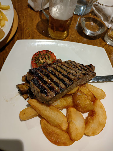Read moreIt was our first time here and having read the reviews we were looking forward to attending a lovely birthday meal for our friends, the place is in a nice setting and was clean. We had to pre order and I love lasagna however I was not allowed this as it was only on the menu up til 5.30pm (didn’t realise lasagne expires at 5.30pm). I decided to have the filet steak rare. It arrived at a good medium, so a fair bit more cooked than normal, I never send food back, it’s a rule of mine so made do. I ordered a drink at the same time as the food arrived and I had to ask again after finishing all my food as I still Did not have a drink. The king prawn starter was definitely not king prawn, it was like the little frozen prawns you find in a prawn cocktail. My main issue was we arrived with 3 children who were very well behaved but like normal 1, 3 & 7 year olds they do not like to sit down 24/7. At 3 separate occasions we were asked to sit the kids down, “they nearly tripped us up” they said, our kids were by our sides and just changed seat places a few times. We had the older staff shake their heads at us, permanently stare at us and make us feel so unwelcome. There was a party of 11 adults and 3 children. Most the steaks come out to well cooked also. Basically we were a bit disappointed with the food and very disappointed with the stuck up older staff who made us feel very uncomfortable, perhaps our 14 faces just didn’t fit however I have never experienced anything like the rudeness I have felt here tonight, will not be returning and will not recommend to anyone...