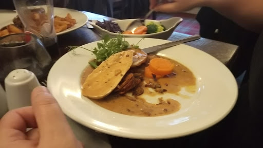 Read moreThe pub itself is a really lovely, warm and cosy little pub in a gorgeous spot. We came for a family Christmas meal and it felt very welcoming and very festive, and they were very accommodating to our large group and the servers definitely need to be praised with how well they coped with how busy the pub even aside from our large group. We were sat in the snug by the fire with our dogs and it couldn't have been a nicer place to be. For the meat eaters the food was amazing and highly recommended, however it lost a star and almost two from me as sadly the vegan and veggie options weren't as good. Don't be mistaken, the meals we had were tasty and well cooked and it was nice to see multiple vegan options on the menu, but the actual delivery wasn't great. My partner is quite fussy and although being veggie/mostly vegan, loves his meat alternatives such as burgers etc, and sadly there wasn't anything of the like on the menu. As the vegan one I'm not as fussy and chose the sweet potato and spinach cassoulet, however it was disappointing to be surrounded by family having delectable roast dinners with the pub signature Yorkshire puddings, to have to have a dish that was so different. Something as simple as a burger and chips or even just vegan sausages as an option instead of nut roast would have been much better pub grub. Unfortunately for me the biggest disappointment was the delivery and accuracy of the food. As said previously I ordered the spinach and sweet potato cassoulet with rice, but what came was what seemed to be a fairly bland sweet potato curry (no spinach) with butter beans and plain rice. There were no starters on the vegan menu, and for dessert there were two options which were pie and meringue with fruit. I was so excited to see vegan meringue on the menu as its not something that's usually offered, but what came wasn't vegan at all but a shop bought meringue (which is made from egg). I was so disappointed as it meant not only could I not eat a large part of my dessert but I began to doubt the rest of my meal and whether it was vegan friendly at all. For a drink after a long walk I'd recommend this pub highly, and for meat eaters it'd be great, but for veggies and vegans I'd sadly give...