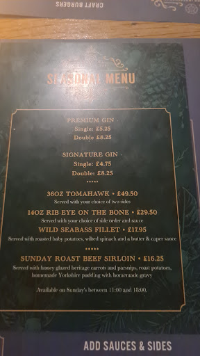 Then the knowledge on the steaks I found poor as they had a on the bone 14oz ribeye I was wondering over the normal 8oz ribeye how big was the bone is there a significant meat size increase to warrant the cost increase no joy so playing safe I went for medium sirloin no sauce and a couple of sides.