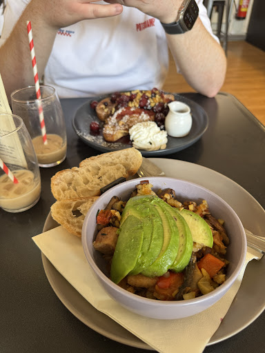 The food wasn't great (vegan breakfast looked tired and came with standard butter, the toastie had really bad quality pesto which ruined it), worst of all, the wait was uncomfortable. There was a table near the door and their dogs barked at everyone coming in. I had a dog with me so appreciate a dog friendly space, but, these dogs were not friendly. It was loud with a lot of clattering about, so we struggled to sit and chat during the wait.