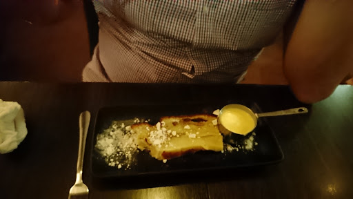 Food was quite nice. My husband had prawn and calamari to start which was adequate. Then we had the liver and the beef Wellington for mains. Both cooked very well, which we were pleasantly surprised by. Dessert, I had cherry bakewell tart, which had no cherries in. It was nice tasting though.