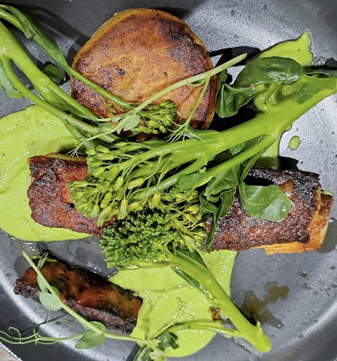 After a long day on the road and stopping at a few places en route only to find them closed or not serving food on Mondays, we made our way to the ever-faithful Druids Arms just a mile or two from where we live. Welcomed by friendly faces we were offered a table inside but plumped for an al fresco meal in the tranquility of the raised garden overlooking meadows towards the setting sun. I had heard much about the pork belly, my lady went for the cider-battered fish and chips and fifteen minutes later both meals duly arrived, served with a smile and a chat. The fish, chips and crushed peas was beautifully done and in her words ‘absolutely amazing’. The pork belly was absolutely out of this world, lived up to every expectation and satisfied completely, the chorizo flavour bouncing marvellously off the broccoli, puréed peas and potato - I would thoroughly recommend trying it to anyone, a truly fabulous meal, well done...