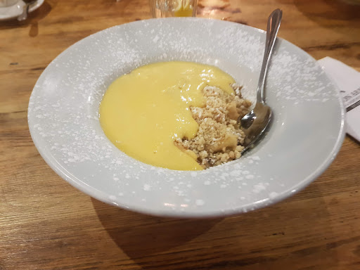 Portion sizes are very generous - most of the starters would have served as mains in some places and the mains were equally generous. The sweet potato fries were really good... the only person who wasnt 100% happy ordered the Parma ham wrapped chicken breast with molten cheese on dauphinoise potatoes and thought it could have done with a little more sauce. The dauphinoise potato was susprisingly dry. Other than that, we were all very happy. 2 of us had the venison suet pudding which was delicious and filling one had a pizza which was tasty but huge - it had a thin base but it must have been 14" in diameter! The fish pie and the battered cod both went down well and the kids' meal chicken nuggets were quality nuggets made from chunks of chicken breast.