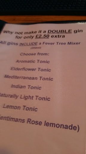 Many gins to choose from, beautifully presented with a wide range of tonics.