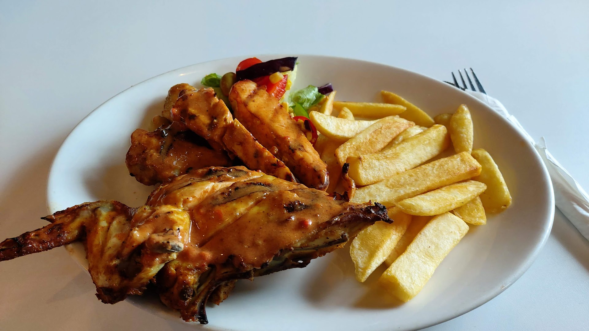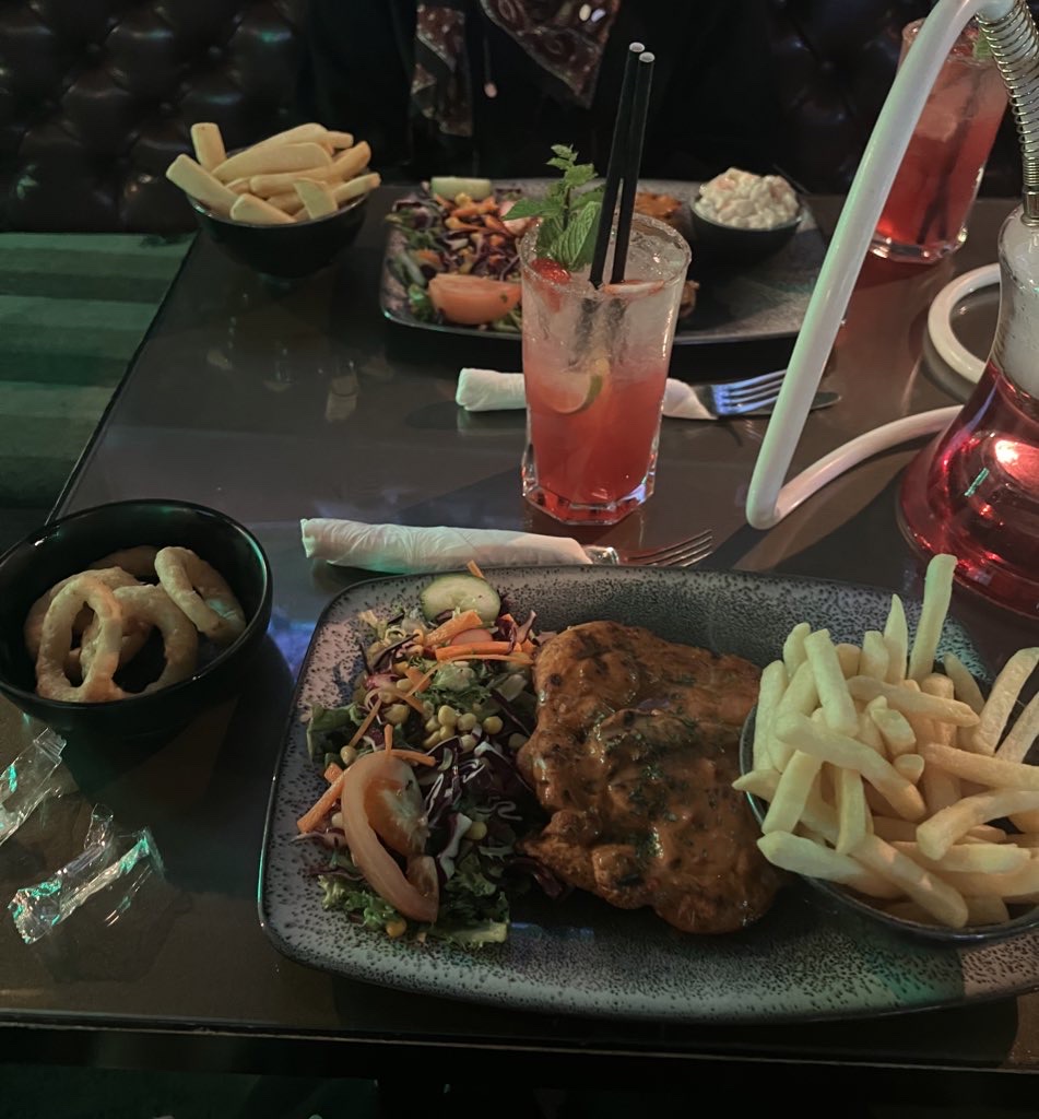 Food was horrible salad looked days old we didn't even touch it, mash was stiff and looked burnt, I got a lamb gigot well done and it was rock hard to the point it took me ages to cut into and chew and worst of all it kept getting stuck on the roof of mouth like weirdly cooked food sometimes does, it was beyond salty aswell, same werid texture with the chicken wings we ordered and we asked for lemon flavour that's all you can taste, it was that overpowering, we also had a pasta side again tasted werid and my friend commented saying it tastes like it's gone off so we didn't touch that either. The only thing that tasted good was the rice and sweet fries and that's only probably because it was out of a packet.