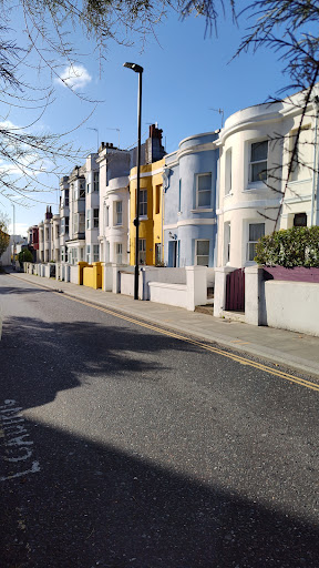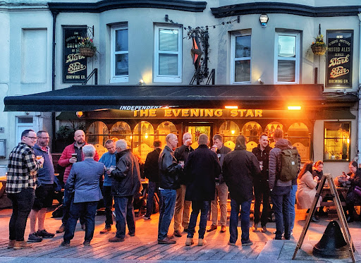 The Evening Star is both the starting point and the ending point of the most brilliant street in Brighton. That street would be Surrey Street, and I love it. I'm coming back for it. There are pubs, shops, and houses for the living along its full extent: starting or ending up at the station with the Grand Central (4.2 stars), the Railway' Bell (4 stars), Rock It Hair Artists (5 stars), across the street Brighton Eco Centre| Ethical Property (5 stars), Brighton & Hove Green Party 🥳(2.8 stars - whoops), University of Sussex (?), and The Evening Star (4.6 stars, "Ales and Stouts"), back across the street LTD, then WM (or MW) temporarily closed, next TABOO in red (4.1 stars), and Grocer and Grain health foods (a well-earned 4.8 stars). But, and but it is, we have completely forgotten to announce the colourful houses located two-thirds of the way down the street on the west side. Of these, the blue house required serious restoration work, finished to great success (see in the photos the screen capture of the same place in the Google archive). Put together all of the above, why wouldn't you want to come back,...