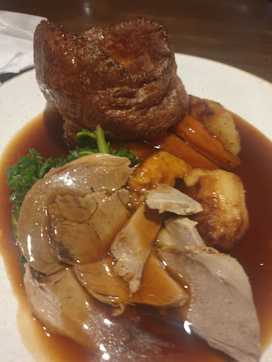Great food, shame about the service! We had a table booked for 1.15 for Sunday dinner and we arrived 25 mins early. No problem, have a seat here in the bar, we'll get you a drink and you can have a look at the menu, while we get your table ready, promising start. Having sat at this table, next to the open door until 1.30 (40 mins), we were a bit cold and had empty glasses, my hubby managed to catch the eye of one of the staff. She asked if we had ordered, then asked what we would like but didn't offer anymore drinks. 15 mins later, the food arrived to our 'interim' table, (a high table with bar stools next to the open door, not somewhere I wanted to sit to eat). I explained we had booked a table, so were told we could sit at the next table along as it was now free. As we sat down she suggested we could go into the restaurant but we opted to stay where we were. The food had come out quickly once ordered and was lush, one of the best we have had, compliments to the chef!!! We were never offered another drink and we weren't offered a pudding, even when the plates were cleared away, we were asked if everything was OK but not if we wanted anything else! I think we were forgotten about and mistakes happen, but there was not one apology. We would have probably had a couple more drinks and would definitely have had a pudding if we had been offered. I think the staff need a little guidance, how much revenue is being lost simply because guests aren't offered another drink or asked if they would like anything else? I've still given 4 stars, the pub has a nice atmosphere and the food was soooooo good. I would go back for the food, hopefully the service gets better a the staff get...