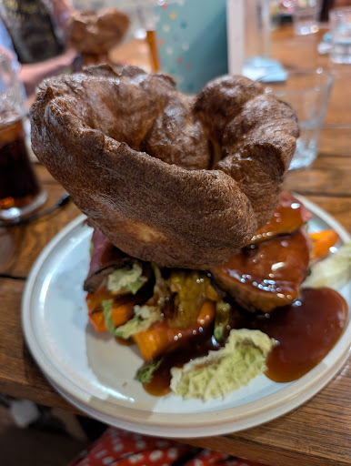 However... The food was really disappointing, although beautiful in presentation. The roast was a sirloin which was very very rare (we weren't asked if we had a preference) but tasted burnt on the outside. The veg was barely cooked, I don't like over done veg, but the cabbage was raw, carrots were hard. The roast potatoes were a real disappointment, they were white and looked like they'd only been in the oven for a couple of minutes. The Yorkshire was massive, but overdone so mostly tasted charred. I did enjoy the cauliflower cheese though. 3 of us had roasts and said the same afterwards. They were really disappointing. Another party member had glazed ham, which was too salty to eat.
