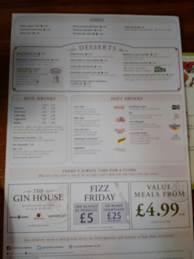 We booked a table using the online booking service. After arriving about 20 minutes early restaurant was about 50% full. So we decided to see if our table was available. We got seated at a table with no cutlery and were told that the waitress would be back in a few minutes to take our drinks orders. They weren't. After waiting ~20 mins for a drink we decided to go up and order some at the bar. This was despite having three members of staff chatting at the bar. Other patrons were having to go up to order drinks as well. After finishing our drinks we then had to walk up to the staff members to ask them to take our food order. In all fairness after taking the food order, the food turned up in relatively short order. Unfortunately they were out of fajitas so I went for the chicken burger, it wasn't mentioned in the menu so I asked if the burger came with chips I was told they came with skinny fries. my wife went for the Rump steak with chips the waitress asked if she wanted garden or mushy peas. Turned out to be a pointless question. The staff members were starting to wake up when bringing out the starter and managed to find the correct table. Although we still had to remind them that we would like to have some cutlery to eat with. We got a knife and fork but not a napkin. When the main came out, the peas my wife asked for weren't there. So I don't know why they even bothered to ask. My skinny fries were the skinniest I have ever come across and contained zero calories, because they were not there either. The rump steak was roughly 50% inedible. The chicken burger was a distinct disappointment. Slightly over cooked, dry, with a bit of lettuce underneath it. The Colonel would have been disappointed. We finished our meals faster than expected and the waiter can to take our plates. Didn't ask if we enjoyed our meal or if we wanted coffees or any desserts. We decided to pay up and go have a drink in the bar. Of course we had to walk up to the bar to pay. I must admit I was tempted to walk past the bar and out through the door. But managed to resist the urge. The bar person gave us the bill and attempted to charge us for the desserts we weren't offered. Which didn't go down well. Suffice to say I wouldn't...