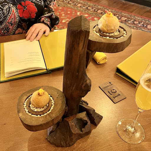 I will say I've never had a dining experience like this. I do not go to many Michelin listed restaurants so it could be standard, but there were staff who bought the food from the kitchen for final quality inspection. They didn't speak, and could be standing there waiting for 2 - 3 minutes waiting for another member of staff to take the dishes from them - these members staff bought you the food and imparted detailed knowledge on the ingredients and taste profiles. At one point my partner went to the restroom and the food was bought out, the dish was explained to me and a cloche was put on my partners disk until she returned and then received the same explanation of the dish. The thought and standards made the meal feel personnel. This was accentuated at the end of the meal when we were given a tour and history of the restaurant, kitchen, and garden where a lot of their ingredients are grown.