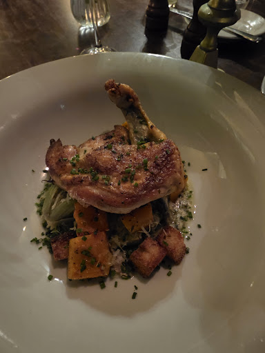 Candlelit dinner tables, a nice menu, we thoroughly enjoyed both evening meals with a glass of wine. Attentive service without being intrusive, any slight adjustment accommodated by the kitchen with ease. A delightful experience and roaring barside open fire and good vibe soundtrack. Two dining rooms plus a few tables by the bar/fire. The music could be heard in my room (2) but it was promptly turned off at 11pm and only on again at 8.30am for breakfast. It didn't disturb me at all.