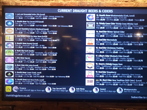 Great welcome, snack menu and selection of drinks available. Highly recommend πππππ Fabulous food, delivered to a high standard and even had a Camembert with a candle for the birthday boy! Loads of choice of drinks available, good quality beer π» Lots of games for use so it creates a very relaxed atmosphere, air conditioned so a good temperature to relax in. Also easy to access travelling via bus, so you can have a drink and leave the car at home, it's the bath to devizes bus...