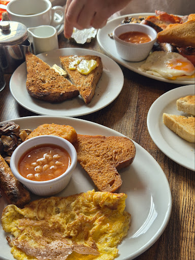 Good: Lovely food, generous portion but did purchase the large vegetarian breakfast. Mediocre: Latte coffee was served warm and I could have drank it all straight away which I didn’t want to do. I asked for it to be warmer and expected a new one but just received it back warmer but still not hot. Bad: Ordered two coffees, they took 15 minutes to arrive. There isn’t a lot of room to walk between the tables. When we walked in we could see that only one table was free. No one came to greet us so we assumed that we needed to seat ourselves. However one of the servers was clearly not happy that we had done that and mumbled under her breath about us (she was doing the coffee so I’m not sure if that’s what delayed our coffee being served). The worst thing about our whole experience was how cold it was in there. My husband sat with his coat on whilst eating. I had a wool jumper on but had to sit with my coat over my legs for warmth and had my hands in my costs hood until the food was served. I was sat next to a luke warm radiator.