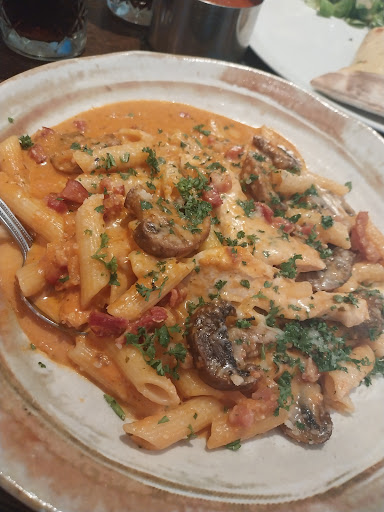 The pasta looked amazing and the same with the pizza, however, two of us had the fish and chips. The batter on the fish was incredibly heavy and dark in colour. Not enough that I would send it back but it took a steak knife to cut through it and it tasted on the overfried side. When the server asked at the end of the meal how we found it, we did say mention this as there was a lot of batter left on our plates (this is never normally something you'd see from either of us eating fish and chips) but this was ignored and were not going to raise a fuss over it.