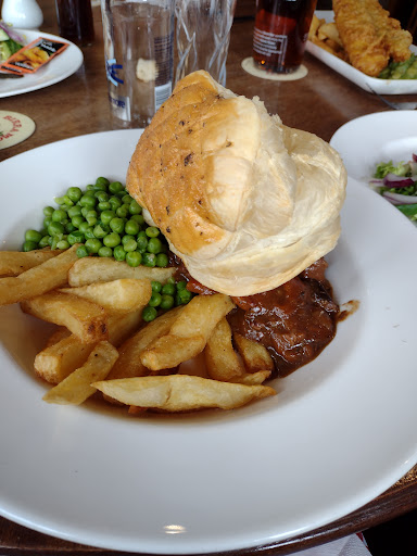 Steak and ale pie ordered. Someone needs teach the chef the definition of a "pie", because it's certainly not meat and gravy in a bowl with a clump of puff pastry sat on top! Chips pretty dry. Shame because in all honesty the meat was nice, but who wants to crumble up a load of puff pastry on top of a bowl of meat and gravy after? It's not a pie by any means.