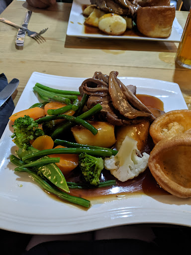 Took my daughter and her partner here last night to celebrate her birthday and also her 20 week scan . Was seated in the restaurant area of the pub , nobody else there ( not surprised now) it was cold , and lets say the feel of the whole occasion was not nice at all . The barman/ waiter was very polite taking our orders and throughout the duration of our visit Starters - I personally ordered the buffalo chicken wings , with what could only be described as some horrendous sauce absolutely smothered the dish which was sitting on some slop which I presume was coleslaw. The two ladies ordered the potato skins, tell me if im wrong now but a jacket potato cut in half is Not Potato Skins !! Because that is what they were served!!! The mains - Aubergine and Tomato curry with chickpeas, no flavour and the chickpeas had just been poured out of the tin , still hard !! The chips that came out with fishcake and cod dishes looked like they’d been cooked in engine oil , omg chef change your cooking oil occasionally, it works winders The photos below indicate how bad the food was as this is what is left at the end . We did complain to the waiter, the manager did not want to discuss ( embarrassed probably) I mean what manager cannot talk to his customers!! A £10 discount was applied to our bill of over £100 , I would rather of paid double and been able to say I really enjoyed that meal and that occasion. But the truth is we didn’t and I feel a little bit embarrassed for this...