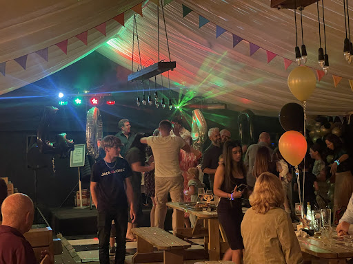 There is plenty of air conditioned seating inside, an area attached to the main building which is covered much like a wedding marquee, and then a huge outside stone-flagged 'decking' area, half covered, half open, with a large marquee or posh tent to the far end and some tented booths to one side. They hold regular events in the 'tent' and there's a great area of wooden play apparatus for the kids to play on, as well as a miniature football pitch, which should keep most kids occupied for a good while. The grounds run all the way down to the canal's edge.