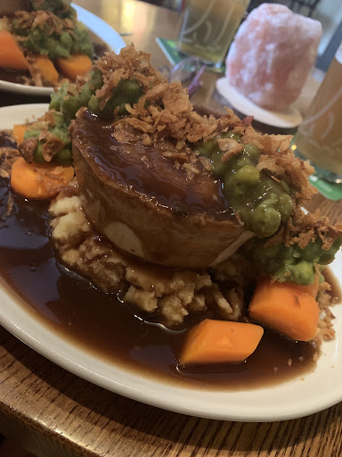 All of the food on the menu looked lovely and Claire and I went for pie and mash. Claire enjoyed the Moo Pie and I went for the Moo and Blue (bosting!) đ