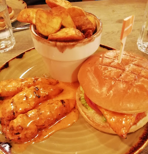 Read moreCame here with a friend as it had just recently opened in town. We decided to share a platter rather than buy 2 seperate meals as it would workout cheaper plus you get more food in the deal. The food took a while to come but this was ok as we built up an appetite. When it arrived I thought the first plate was all we were eating, but we got 2 of the same which was too much for 2 people to eat. We also ordered 3 sides which was 2 peri peri chips & coleslaw. The chicken was tasty and was coated in thick sauce, we asked for the spice on one chicken to be cooked medium and the other to be hot but both were served hot. Neither tasted hot, rather medium spice. There was a chilli sauce bottle on the table which wasn't hot in taste and seemed watered down but it was ok. I couldn't finish the large chicken pieces, I just managed the wings, chicken strips and one quarter chicken. Would I go back again? Yes I would as there is plenty of choice for chicken lovers like me. The food price isn't that cheap but then it is located in town so I suppose it is priced accordingly. The location is perfect after a night...